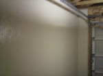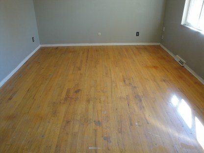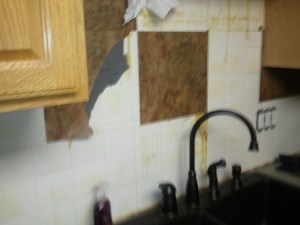 With wanting to make it feel larger, we are going to have to do some eye deceiving tricks. Our vanity is a large wood one that goes from the floor to the sink in a black formation. No openings to make it feel lighter or more spacious. It does seem someone else had attempted to make some changes by painting it white from the original dark wood. Unfortunately, they did not paint it correctly so its very streaky and you can see clumps of dirt in the paint. The same goes for the vanity mirror with medicine cabinet – which is wall mounted. Our goal for this area will be to make it feel more open. The sink area is right next to the door so it would be nice to open it up a bit.